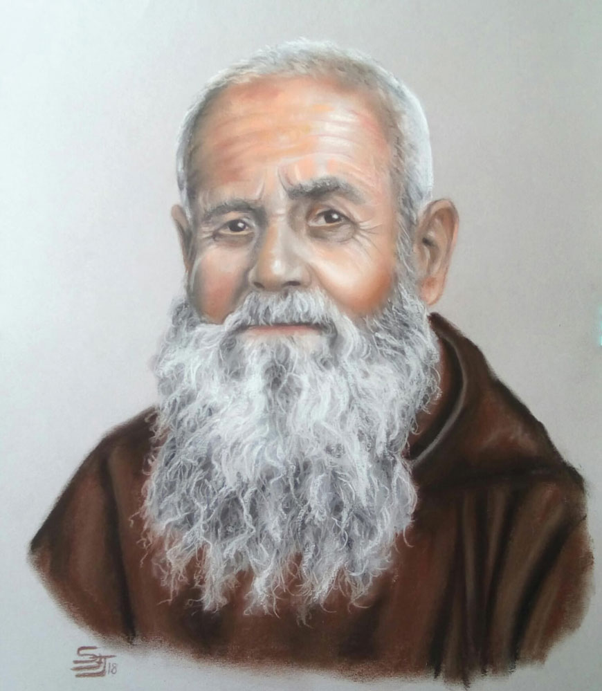 Ese momento fue muy emocionante. Hice un retrato al pastel de Fray Leopoldo y quise donarlo a los hermanos capuchinos. Me hacía mucha ilusión conocer a Fray Damián, su enfermero, y mostrarle la obra. Cuando la vio, se emocionó profundamente. Me dijo que era uno de los cuadros en los que más lo reconocía, que sentía su presencia en el rostro. Me impactó muchísimo. La comunidad decidió colocarlo cerca de su tumba, y durante la pandemia estuvo allí. Me enteré por una foto en redes sociales. Fue una de las mayores alegrías de mi vida.
