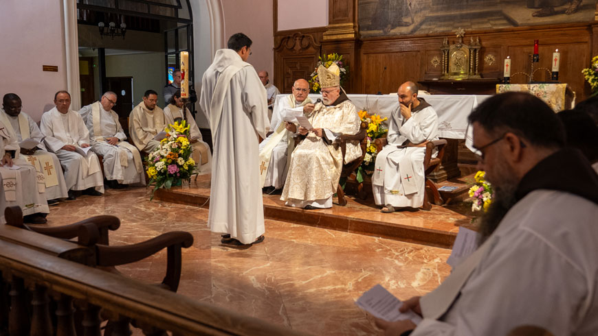 Padre Carlos, Hermanos capuchinos, Hermanos y Hermanas todos. ¡Qué alegría poder celebrar esta eucaristía y esta ordenación con todos ustedes. Primeramente quiero felicitar a Nacho por haber escogido esta fiesta tan bella para tener la ordenación. Yo me ordené en la fiesta de san Juan Bautista. Hice mi profesión el 14 de julio, que es la fiesta de la toma de la Bastilla y le tengo envidia de tener la Divina Pastora como fiesta.